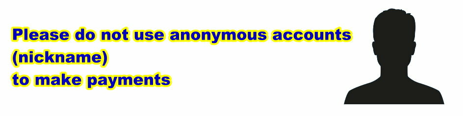 usiningPayPal account. (Please do not use anonymous accounts to make payments)